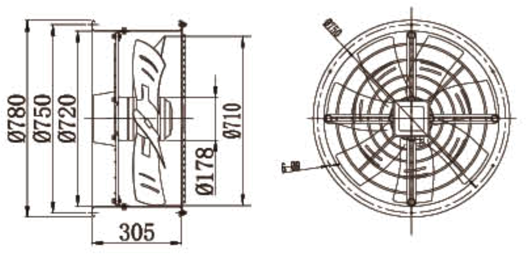Inicio / Productos / Ventilador axial / Ventilador axial de cilindro / YWF-710 Ventilador axial cilíndrico de bajo ruido y uso múltiple